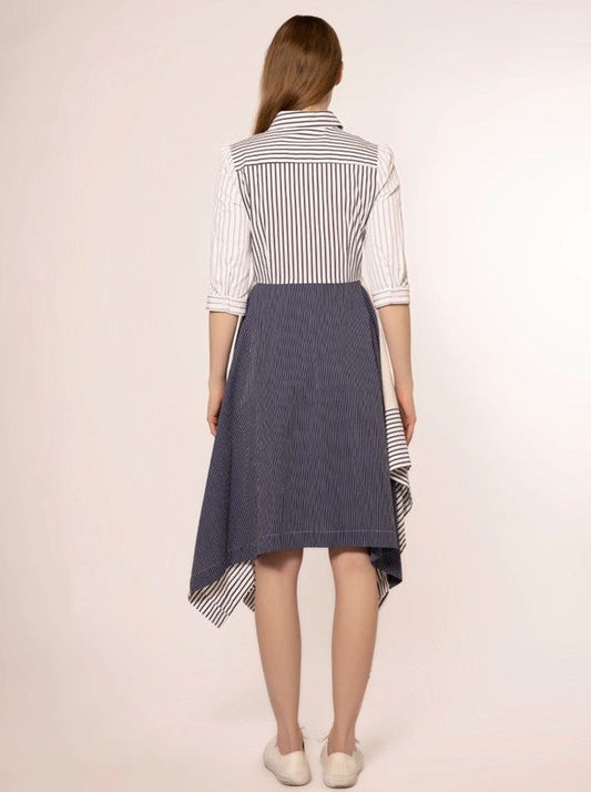 Eyelet Sleeve Shirt Dress With Waist Ribbon